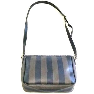 Authentic, c.1980s Vintage, Fendi Wide Stripe Pequin Print Crossbody Bag feat. Gold Tone Hardware, Leather Trim/Piping & Adj. Strap. Minor age related wear, w the worst being on the trim, + small tear @bottom of interior lining(pic7) The overall condition of the body, of the bag, is Excellent for it's age! The only real noticable flaw is the trim +minor wear to the strap. Drop measurement is from the shortest length. Please ZOOM all-16pics for addn'l details &feel free to ask any questions.