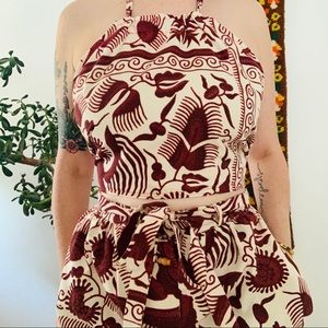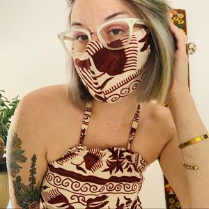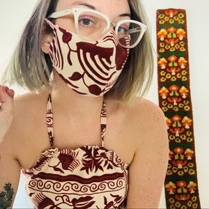 VTG Cropped Adjustable Halter Top & Mini Skirt w/ matching face mask