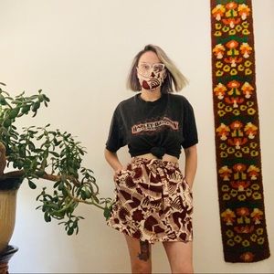 Mini skirt buttons up the front w/ two kinds of wooden buttons & has an attached belt, has pockets!