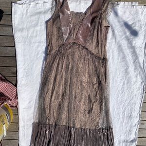 Brand new Sundance dress with intricate lace detailing and velvety straps and hem. Periwinkle outer shell and under skirt.