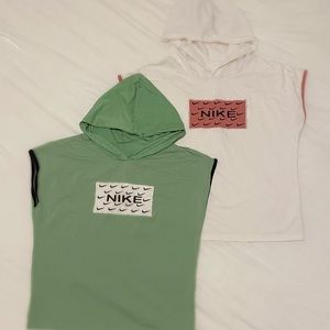 pink and green nike hooded tees