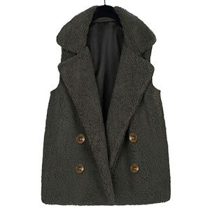 NWT Sherpa Slate Double Breasted Chunky Vest Coat. 95%Polyester,5% Spandex