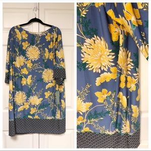 BRAND; LONDON TIMES WOMAN BLUE YELLOW FLORAL CONTRAST DRESS