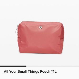 Lululemon All Your Small Things Pouch 4L. Great bag for most everything. Use as a clutch, a makeup bag, or a toiletry bag. Color is Cherry Tint.