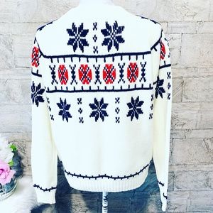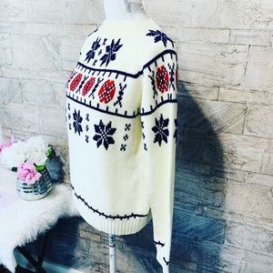 Vintage Northern Isles Chunky Ribbed Knit Grandpa Sweater size Medium runs oversized, chunky Knitted, color Ivory,Navy and red, beautiful details please see all pictures for details, In amazing condition looks like new without tags.