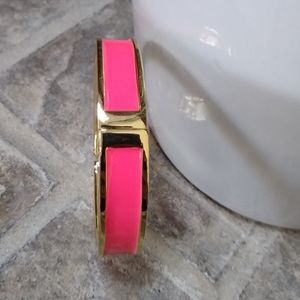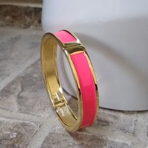 Gold Pink Enamel Bangle Clamp Bracelet