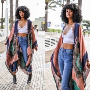 Rose Woven Colorblock Transitional Ruana