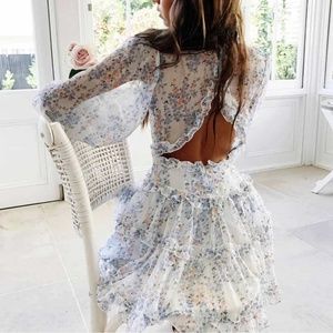 Delicate floral floral print, invisible back zip.