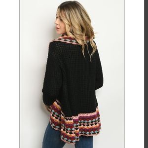 Black boho multi colored cardigan. Gorgeous colors. Long sleeves. Super comfy and warm!