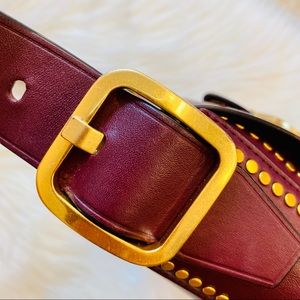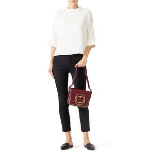 A new take on vintage-chic style, this compact Tory Burch bag is outlined with small studs and features an oversize buckle for a polished, put-together look.