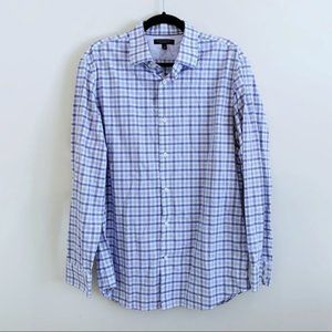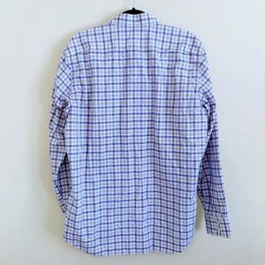 Banana Republic non iron button up shirt in a purple and blue check / plaid pattern.