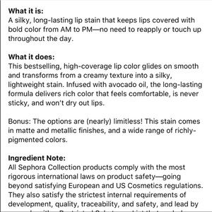 - Sephora Cream Lip Stain - Size: 2.5ml Travel Size - Shade: 96 Red Velvet