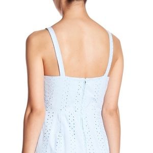 Eyelet dress with a bib detail to add some flare. Fit: this style fits true to size. - Square neck - Sleeveless - Back zipper closure - Bibbed detail on front - Eyelet construction allover - Lined - Approx. 31" length (size S) - Imported