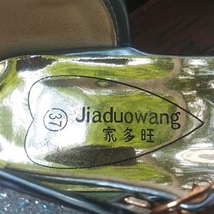COMES WITH REPLACEABLE HEEL, some glitter coming out in the back otherwise good condition