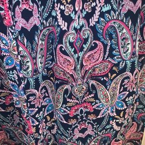 Cute navy sleeveless paisley print shirt dress with ruffle trim. New with tags. Size Medium, additional measurements available upon request. Brand is Signature Studio original price is $60 marked down to $39