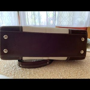 Perfect condition! Soft white and chocolate brown leather. Absolutely clean inside. Bought years ago and never used. Heavy duty great quality as Coach always does. This purse is just beautiful.