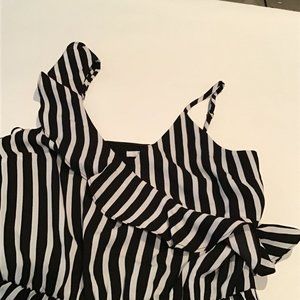 Bar III Striped Ruffle Jumpsuit black and white, side zipper
