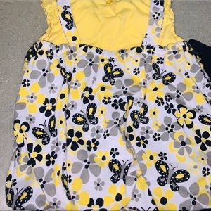 this is yellow butterfly’s and bubble lay top with ruffles and gemstones