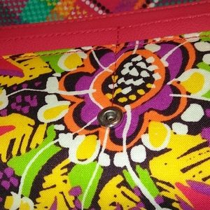 Beautiful brand new Vera Bradley wallet red back ground with Hawaiian floral design. Has 13 slots for cards and ID, wow!! Four areas for bills and the like. Center zipper. Hardware is beautiful shiny gold. NWT smoke-free pet loving home. Shipping and packaging in a covid free environment. questions welcome, all offers considered.