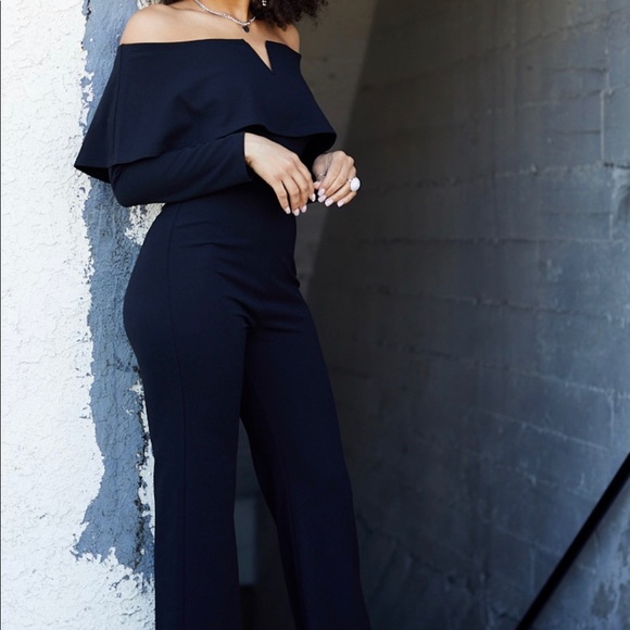 Off Shoulder Long Sleeve Bell Pants Back Zipper Solid Jumpsuit