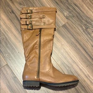 Tall tan leather riding boots. Full zip on inside of boot. 3/4 zip on outside. Perfectly kept. Great condition