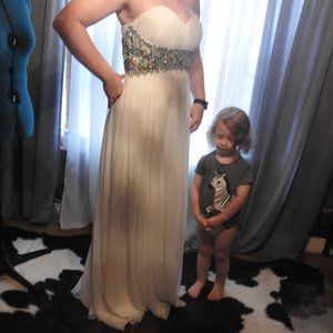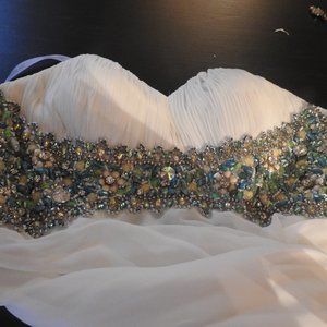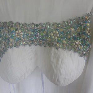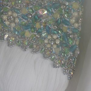 White Sherri Hill Jewel Encrusted Gown teal silver
