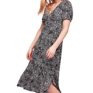 NWT Free People Floral Prairie V-Neck Slits Midi Dress. An abstract print adds a fresh twist to this prairie-inspired midi dress.This stylishly chic midi dress features a fun print and flirty plunge neckline.