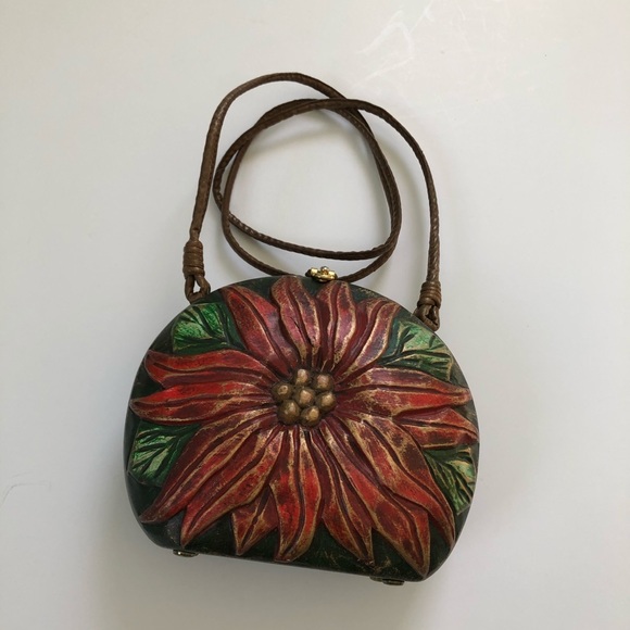 Timmy Woods of Beverly Hills hand-carved wooden Purse vintage