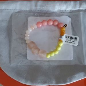 PINK & YELLOW ELASTIC is the one for sale; 14K gold-plated brass, quartz, glass beads, magnesite.