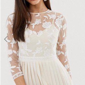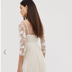 A beautiful embroidered lace illusion engagement or elopement dress. I purchased this for my engagement photos but sadly, customs held up the delivery and well I never had a chance to wear it. This would be a perfect dress for engagement photos, a bridal party or rehearsal dinner - or even a last minute covid-19 elopement dress.