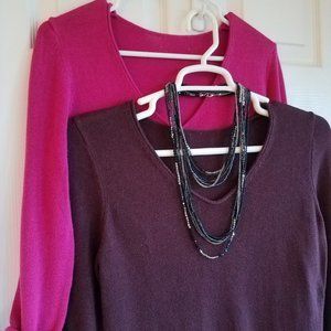 The Pink one has a very small (approx. 1") ribbed cuffs and hem - also has slit sides at bottom with back longer. 24" long front 25" back