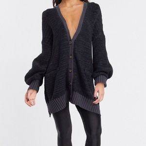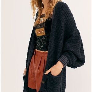 FP Snow Drop Cardi. So soft button-front cardigan designed in a chenille-like fabrication with exaggerated sleeves in an oversized slouchy silhouette.