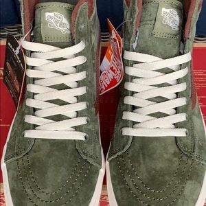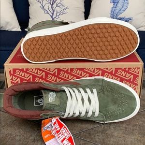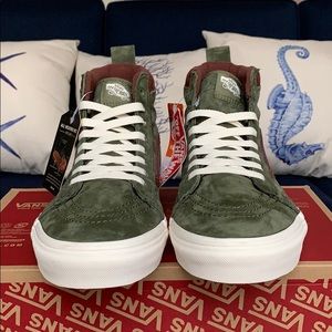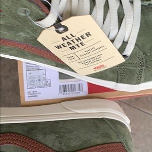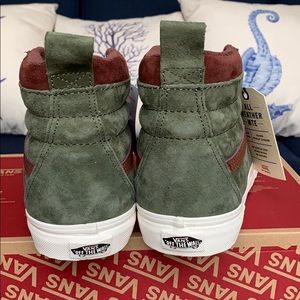 Brand new in a box no lid authentic women’s Vans Sk8-Hi Mte Lichen Gr/Rt Br