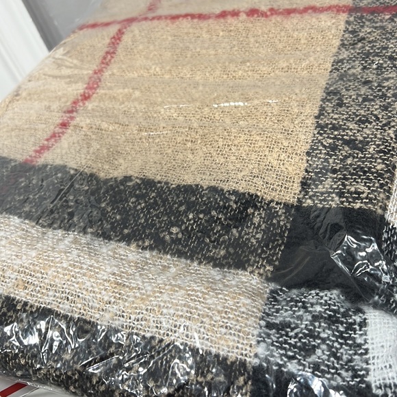 Blanket Plaid waterfall Scarf. Frayed Hem Vest.