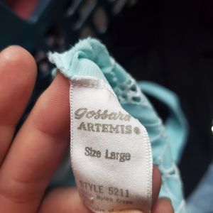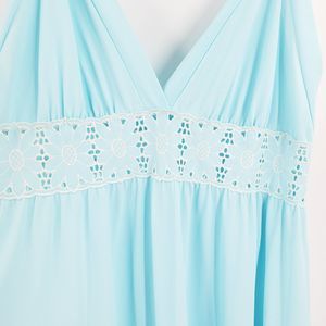 Gossard Atremis light blue nightgown house dress sleeveless sheer, lace detail, v neck, lingerie, pajamas, long maxi length. Women's size large.