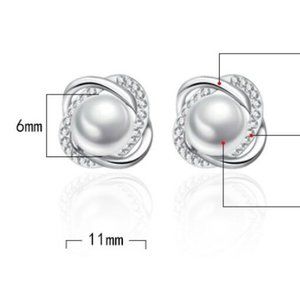 925 Sterling Silver Pearl Diamond Stud Earrings