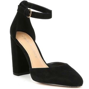 Black Suede Ankle Strap Block Heels