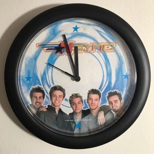 An *NSYNC analog wall clock - I mean, who doesn’t need this?! From 2000, great used condition. Only flaw is some faint scratches on the surface, but this is barely noticeable unless you look up close. Works perfectly, needs 1 AA battery (not included). Taking offers!