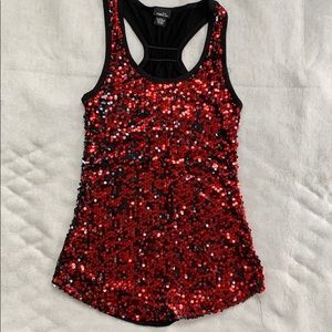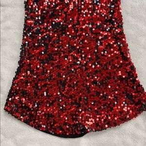 Red Sequins Adorn the Front. The sequins appear to be all intact. Front is completed lined.