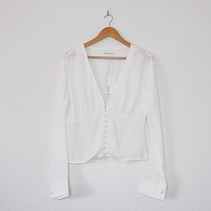 Reformation Fulham Long Sleeve Buttoned Ivory Top