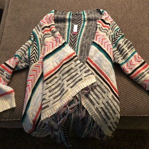 This is a native looking cardigan sweatshirt. Very warm. It’s a size XXL 19. Fits well. Smoke free/ pet free home.