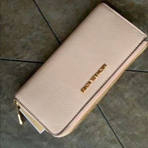 NWT authentic Michael Kors Jet Set Ballet Large Three Qtr Zip Wallet Wallet Type : Zip Around Wallets Material : PVC Color Family : Multi Color Targeted Group : Women 35F8GTVZ3B PVC signature three quarter zip around wallet Polished golden hardware Leather and custom logo fabric lined interior Interior center zippered coin compartment 8 card slips and 4 bill compartments Dimensions: 7.75 (L) x 3.75" (H) x 1" (W)