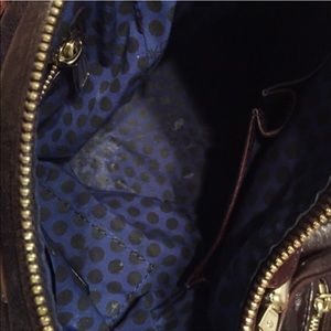 A great like new crossbody bag that I purchased on posh last year. Used a handful of times—a one-of-a-kind wine/Black Cherry color with fun polka-dot lining. the perfect leather bag for fall.