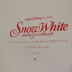 Official Disney Snow White and the Seven Dwarfs exclusive Commemorative Lithograph 1994 print. 12x16" with mat.