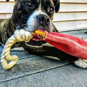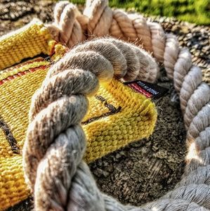 Tug And Go Repurposed Firehose Dog Toys are handcrafted and American-made utilizing durable materials and time-tested techniques by working municipal Boston firefighter. For more information and to check out my stellar five-star reviews take a look at my website www.tugandgo.com. Tug And Go fire tested pet approved. (Montana Select). Tugs are constructed with 100% structural firehose and100% cotton fiber rope and stuffed with repurposed burlap and fabric used in toy production.