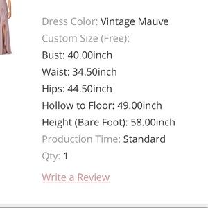 Brand new custom ordered bridesmaid dress in vintage mauve. I got the size wrong and now I can’t return it, measurements are in the picture.