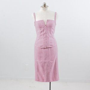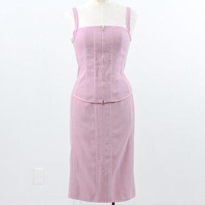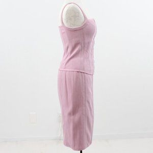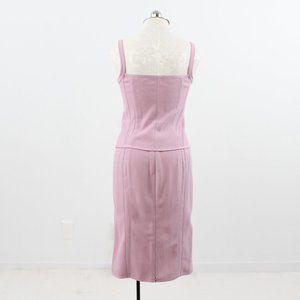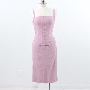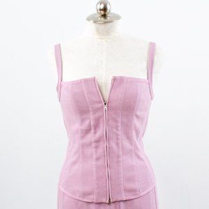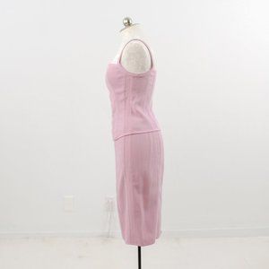 Monochrome tonal + lilac + ladylike suits = so trendy rn! Vintage Narcisco Rodriguez mid-weight textured cotton two piece outfit. Slim stretchy cropped corset style tank & matching fitted straight pencil midi skirt w zip vent slit. Chic & classy. EUC / NWT