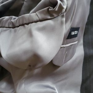 Classic Nautica mens suit with fully lined jacket. Color is a charcoal gray/black with blue lines throughout (blue lines shown in last picture)