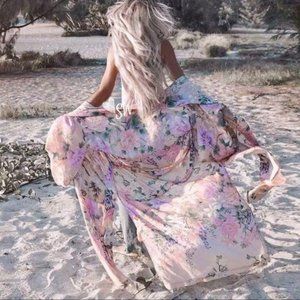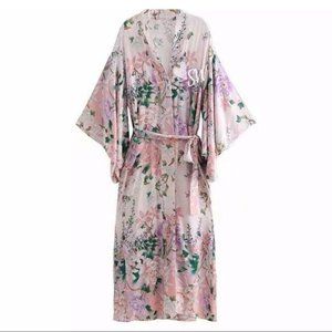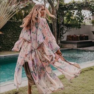 Absolutely stunning Floral Printed full length maxi Duster Cardigan Kimono and pastel pink, green, purple, cream colors. Wide sleeves and oversize fit to create a flowing look. Waist tie belt. Boho anthro free people gypsy faithful love lemons madewell festival