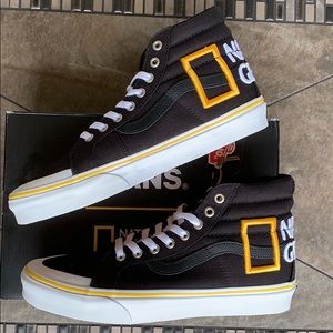 Brand new in a box authentic men’s Vans Sk8-Hi Reissue 13 National Geographic Logo